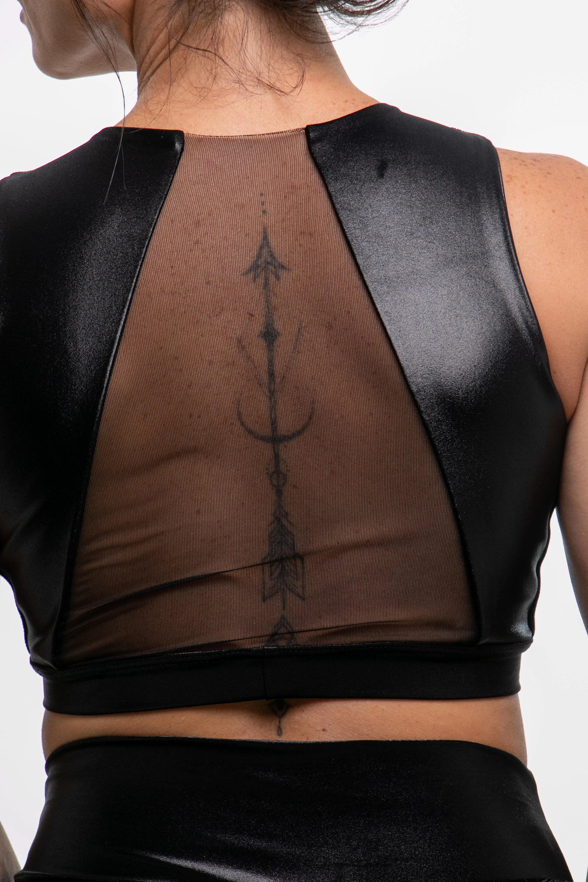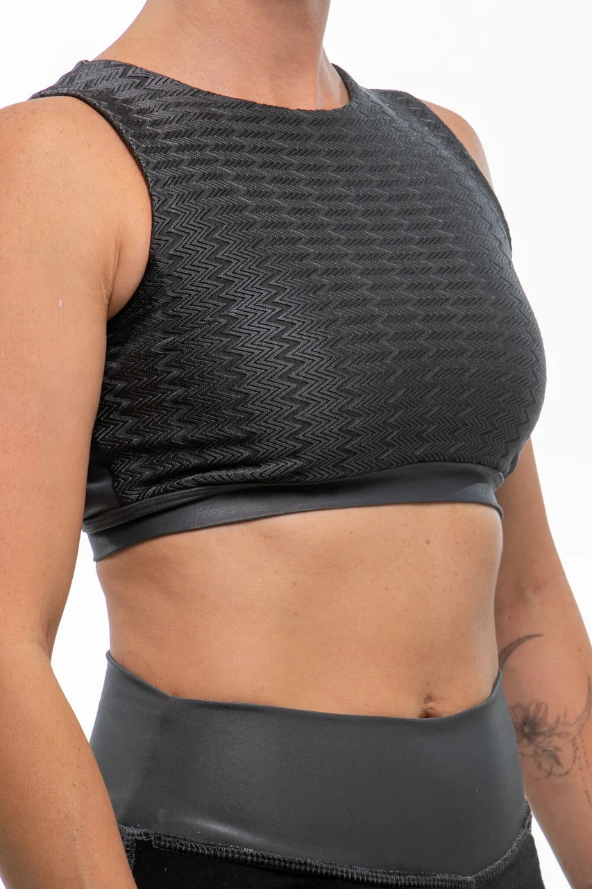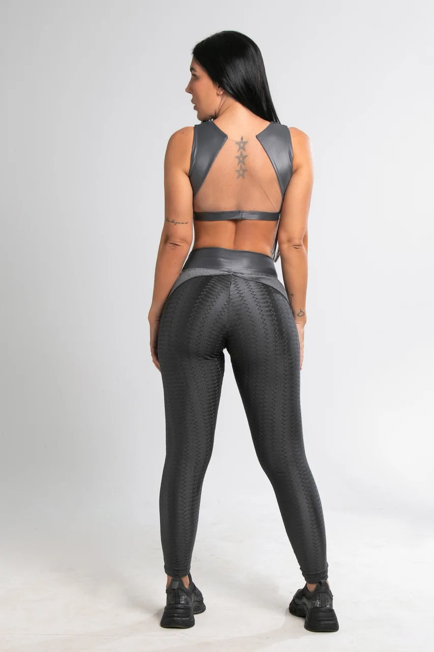 ✔ Design Exclusivo: O mix de materiais e o detalhe nas costas tornam esse top único e cheio de personalidade.